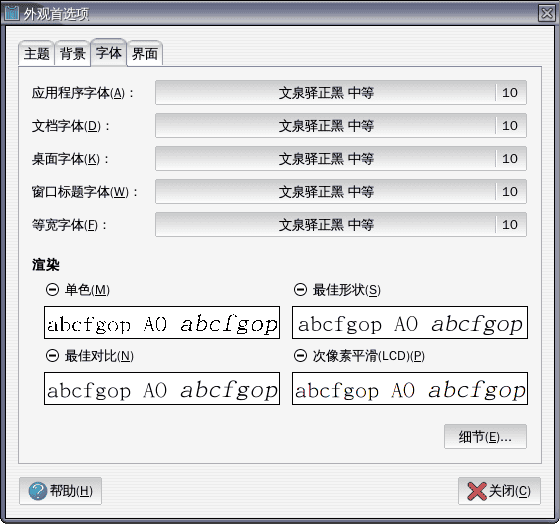 安装好后,选择“系统-首选项-外观”,打开“外观首选项”-“字体”窗口,全部设为文泉驿正黑体,如下图: