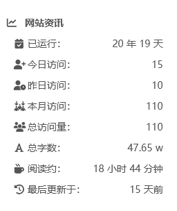 视自己情况其实还可以设置 visitors: "总访客数:" 和 pageViews: "页面浏览:",要适当修改上面 umamistats.js 文件,不细述。