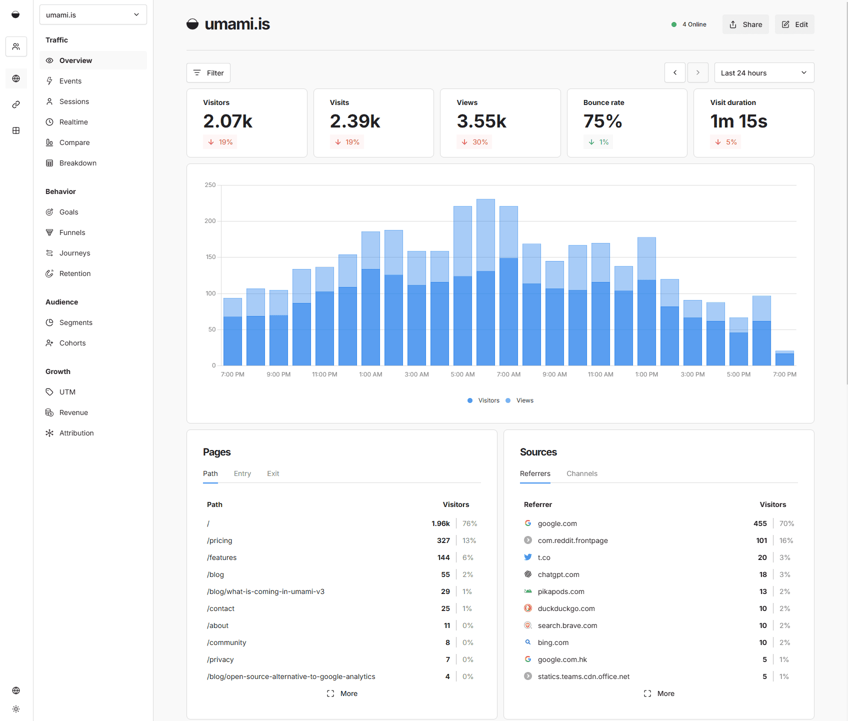 Umami 是一个开源网页访问统计服务,类似Google Analytics。专注于简单,快速,隐私安全。