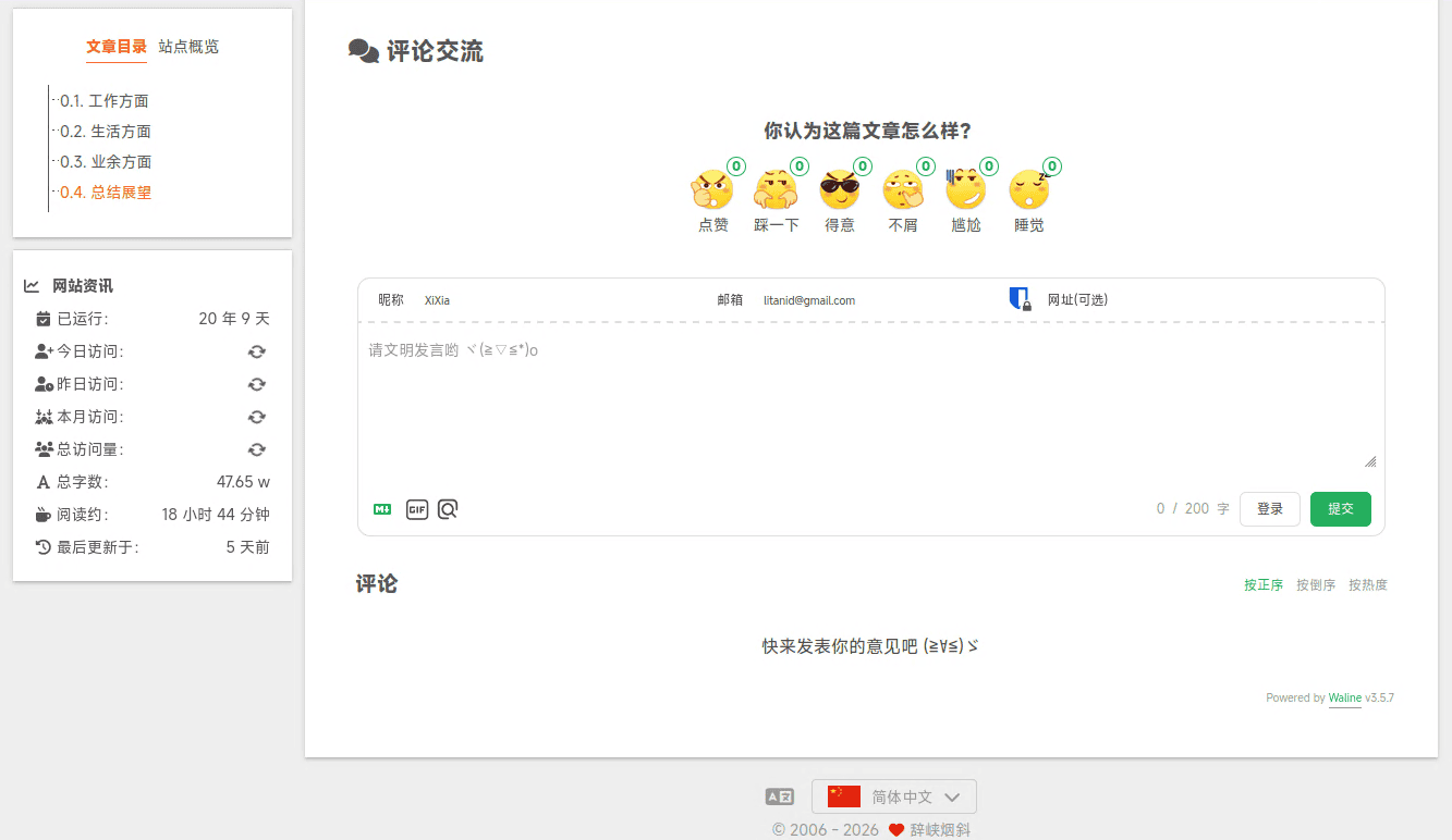 浏览器打开 https://cww.yiwan.org/ui 即可进入后台。个人感觉 Waline 的后台比较简捷,甚至说是简单。